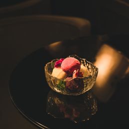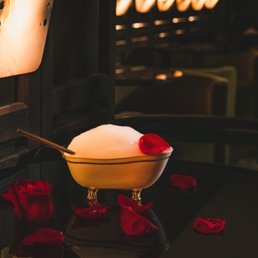Absolutely love this place! Great speakeasy with very unique, instagram-worthy cocktails. Follow the carpet to enter inside. Came as a party of 2 with no reservation on a Wednesday summer night around 8pm and were able to get seated right away. If you want to do the tasting menu (two cocktails and some combo of savory items and dessert), you have to book at least one day in advance on resy. They don't let you do it as a walk-in (though everything on the tasting menu you can still order a la carte). For drinks, my favorite cocktail of the night was definitely the mojito - a tasty watermelon mint drink that hangs from the ceiling (see photos). They were out of at least two different drinks that night, including the Manhattan, which my friend really wanted so was a little disappointing. For food, we got the oysters and sushi. The oysters were very good and I loved the mignonette it came with. I didn't love the sushi, which was some unique play on sushi with crispy rice and fruit. I didn't even taste the fish. 10/10 recommend.